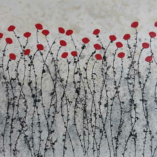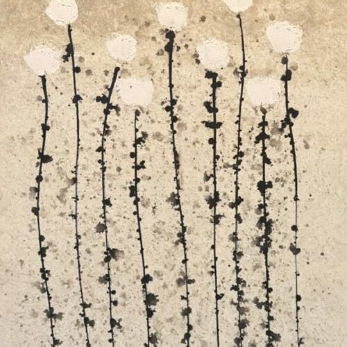 Omniprésence de l’élément végétal, et particulièrement des fleurs. L’artiste donne vie aux fleurs en les représentant de manière iconographique, capturant les qualités esthétiques d’une fleur plutôt que botaniques et les intégrant dans un paysage souvent sauvage. Il en ressort une impression de mouvement grâce à la fluidité des tiges des fleurs qui dansent sur la toile comme une célébration de la vie.