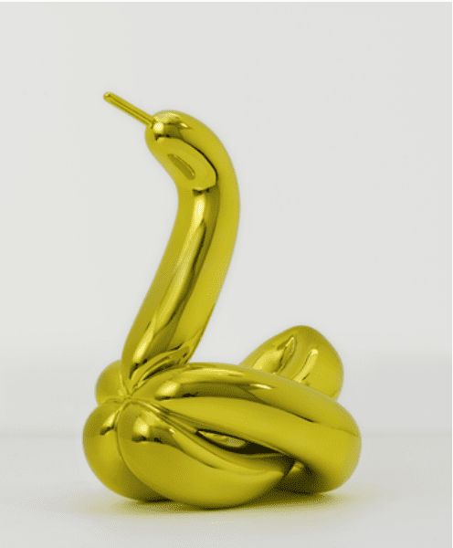 Reconnu par les plus grandes institutions, MoMA, Whitney Museum, Guggenheim, Tate, Centre Pompidou, Koons a bénéficié d’expositions majeures dont une rétrospective au Whitney (2014) qui voyagea jusqu’au Centre Pompidou et au Guggenheim Bilbao. Ses distinctions sont à la hauteur de son impact culturel : promu Officier de l’Ordre National de la Légion d’Honneur par le président Jacques Chirac, honoré par le Département d’État américain, premier artiste en résidence à l’Institut Zuckerman de Columbia University. En 2019, sa sculpture Rabbit établit un record historique en se vendant 91 millions de dollars chez Christie’s New York, confirmant son statut d’œuvre la plus chère jamais réalisée par un artiste vivant. Collectionner Koons, c’est acquérir bien plus qu’une sculpture ou une peinture : c’est posséder une icône culturelle qui défie le temps et célèbre la puissance transformatrice de l’art contemporain.