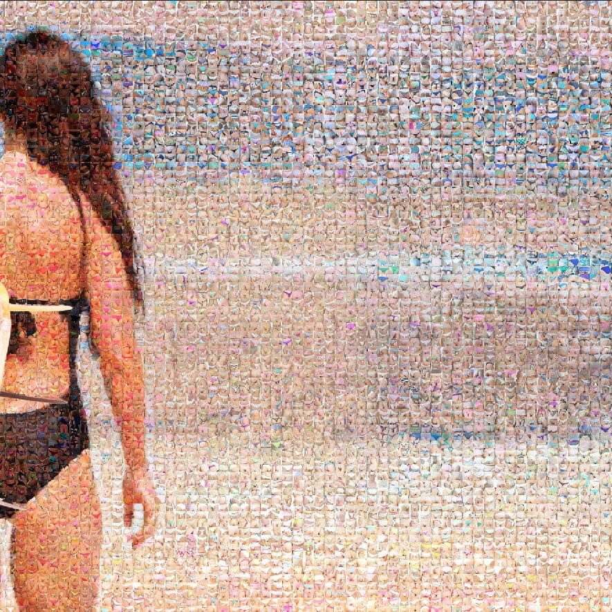 Son travail reflète parfaitement notre société ancrée dans l’ère digitale et hyper-connectée. Ces milliers de minuscules photographies confèrent à ses créations une profondeur vertigineuse, une impression d’infini qui fait écho à la surreprésentation d’images, publicitaires, érotiques, médiatiques, qui saturent notre quotidien. Chaque œuvre propose une lecture à double dimension, tant au niveau du contenu que de la forme. La complexité technique côtoie une simplicité visuelle apparente, créant une intensité rare qui trouble et fascine simultanément.