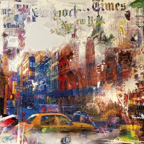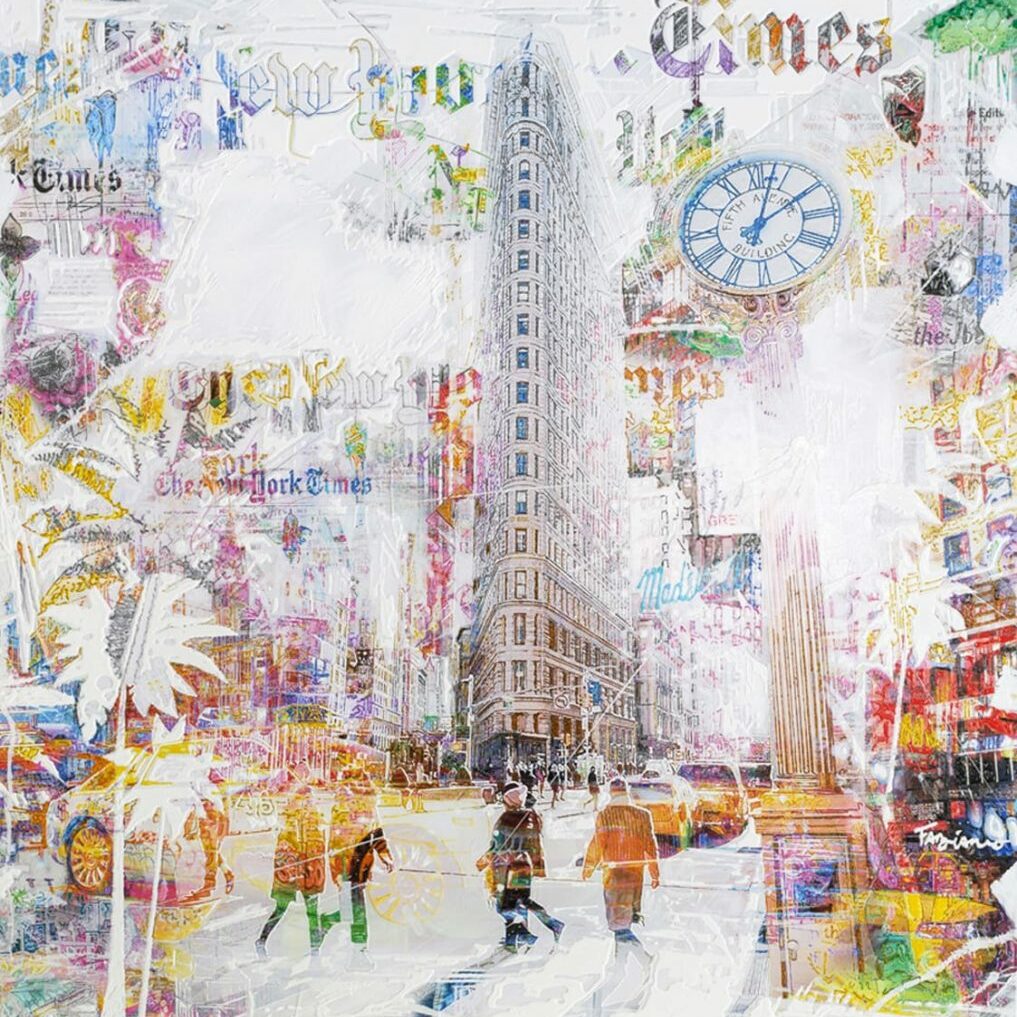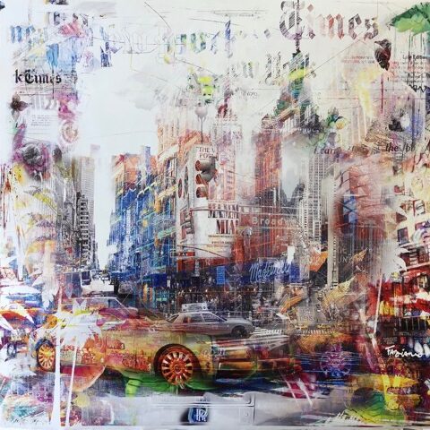 Nelson Fabiano utilise aussi des photos de grandes villes qu’il a prises tout au long de sa vie. Il soumet ses photographies à plusieurs modifications avec de la peinture, des reliefs et y ajoute des collages, etc. Ses couleurs préférées sont le gris, le blanc et le rouge. Ses peintures urbaines ont une influence nord-américaine et rappellent souvent New York. Fabiano travaille également sur des portraits de célébrités des années 2000, dont la composition finale a généralement un style similaire au Pop Art. Soulagement si essentiel dans son travail. Il ajoute de la profondeur et de la matière à ses toiles. Nelson Fabiano est membre de la Fondation Taylor à Paris et de la Maison des Artistes Français.