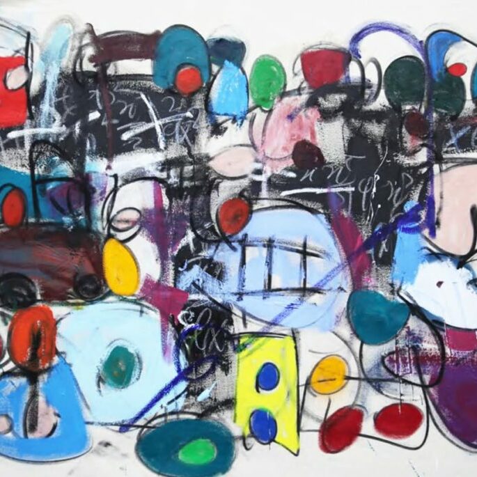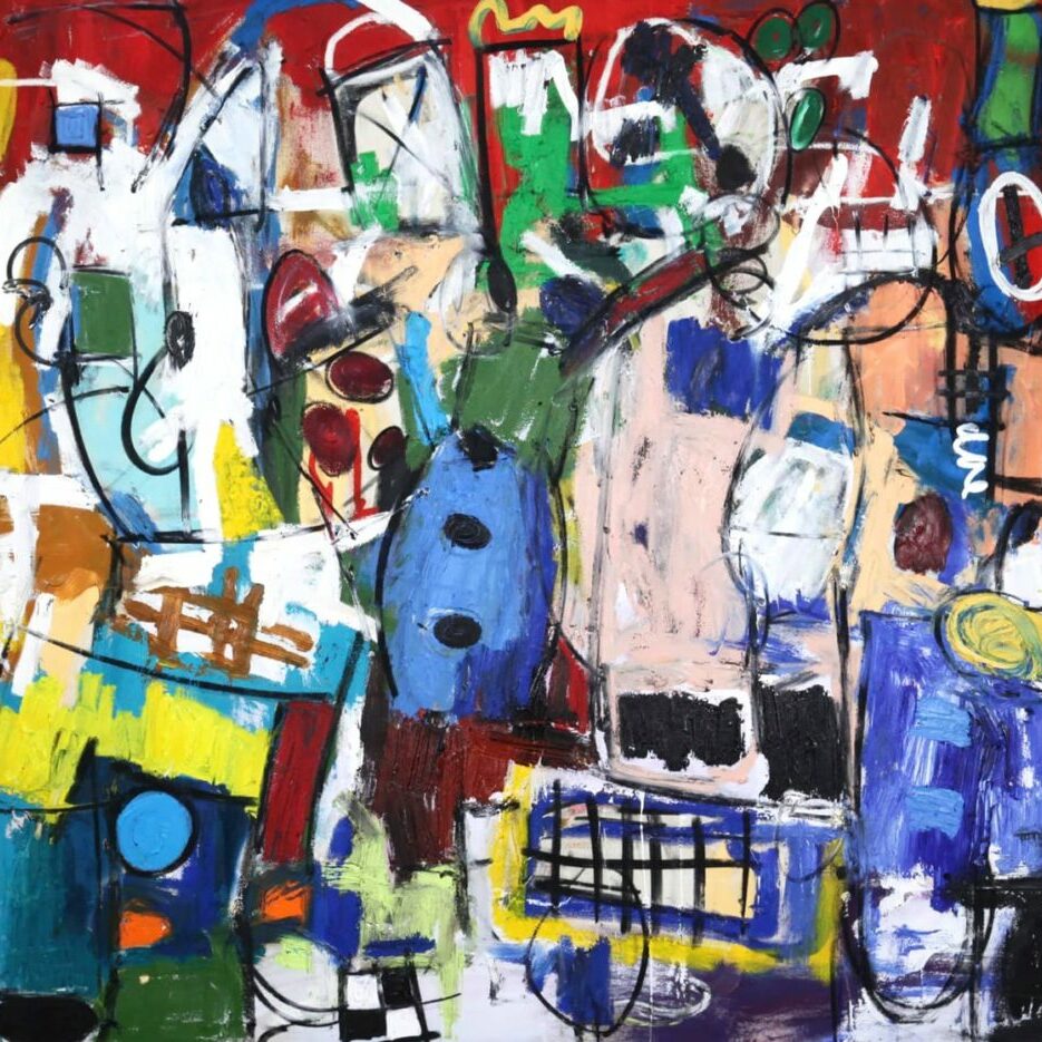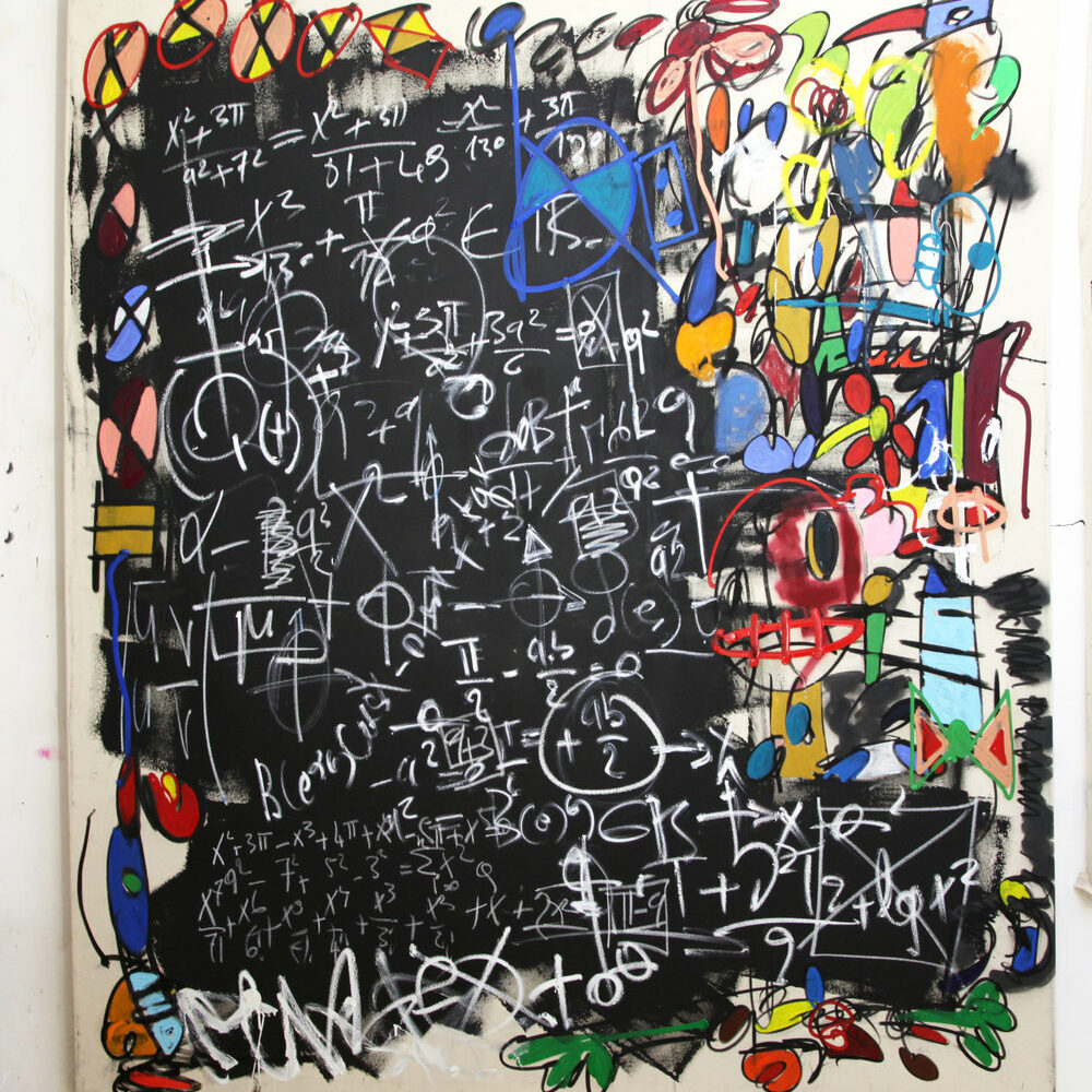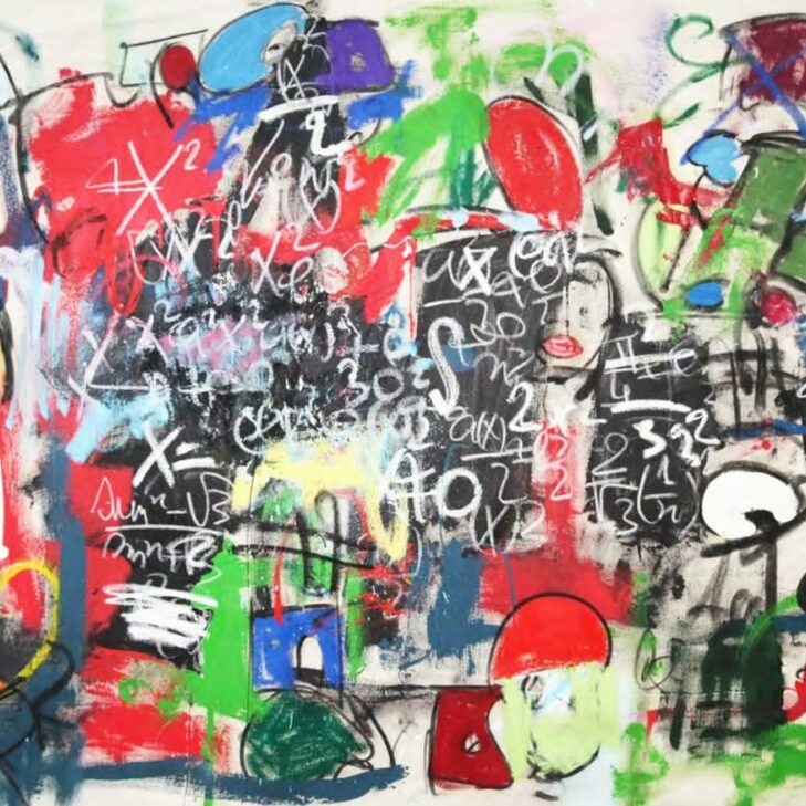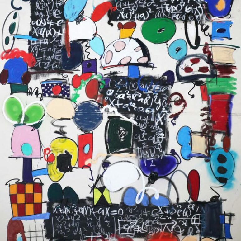 Créant un travail captivant et exigeant en technique avec une forte inspiration du mouvement d’expressionnisme abstrait des années 50 et 60, les peintures de Taher Jaoui sont de riches assemblages de formes en couches, de couleurs vibrantes, de gestes expressifs et de signes et formules mathématiques. Appliquées sur la toile à travers une interaction dynamique, un dialogue physique d’avant en arrière dans lequel la perspective et l’orientation changent continuellement jusqu’à ce que tous les éléments soient équilibrés correctement, ces créations opulentes sont la manière personnelle de l’artiste pour s’exprimer.
